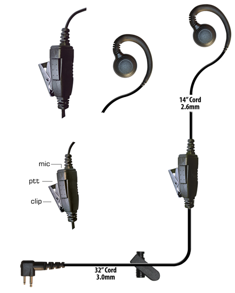 Receive-only earpiece with high-quality speaker, acoustic coil tube, and eartip. Black or clear tube 12" (if plugged into a speaker microphone or 42" length cord if connected directly to the radio)
