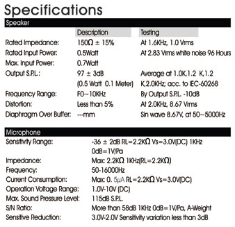 - Sensitivity: -51± 3dB @1KHz 2.2KΩ 3V 0dB+1v/pa